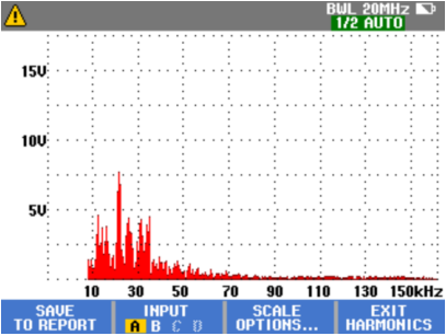 過大的諧波不僅會威脅旋轉機器,而且也會損害連接到力係統的其他設備。MDA-550 提供了檢測電機驅動諧波能力,但也能檢測逆變器開關電子設備的潛在影響。MDA-550 具有三種諧波範圍:1 次至51次諧波、1 9 至kHz、9 kHz 至150 kHz,能夠檢測所有諧波汙染問題。