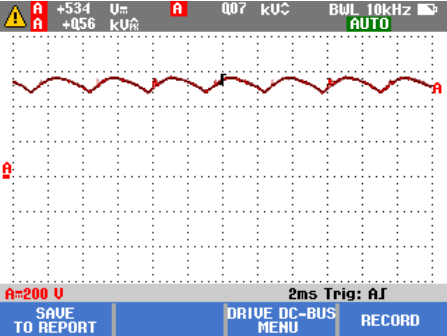 在電機驅動器中,驅動器內部的交流-直流轉換至關重要,為獲得更佳驅動器性能,必須要保證電壓正確、充分濾波並保持低紋波水平。高波紋電壓可能說明電容器存在故障或所連接電機的規格不正確。MDA-500 係列的記錄功能可用於在負載接通的工作模式下對直流總線的性能進行動態檢查。