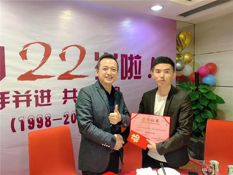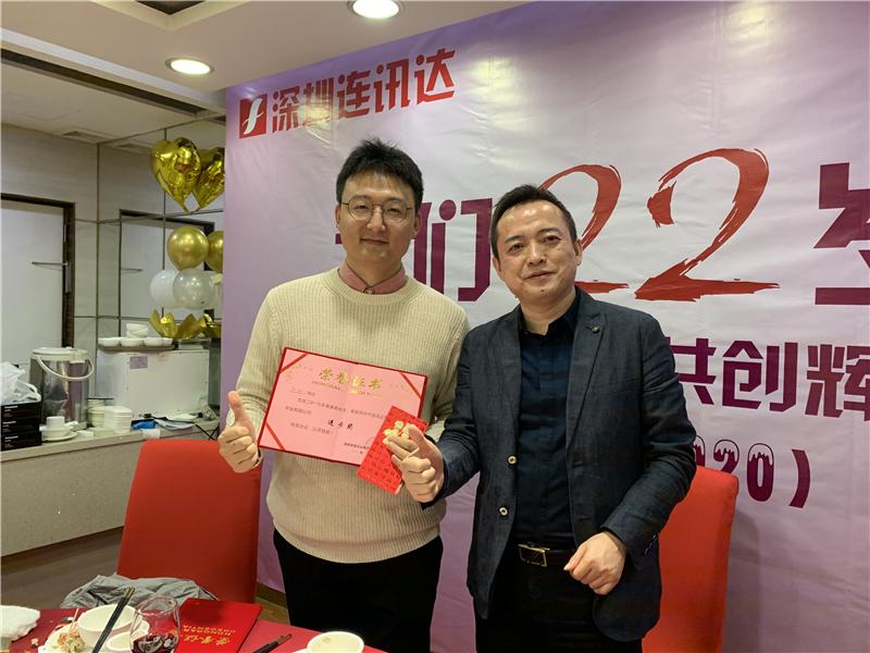 深圳乐鱼棋牌mac更新 走過了22個春夏秋冬,不負韶華,隻爭朝夕。公司領導對2019年表現優異的員工,頒發了優秀員工榮譽證書與年終獎金。公司領導同時希望2020年全體員工謹記乐鱼棋牌mac更新 文化,發揚傳承連訊精神,同心協力,建設和諧、快樂的幸福企業;希望在全體員工共同努力下,努力完成2020年各項目標,並祝大家合家歡樂,身體健康,萬事如意。