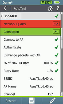 – 網絡質量: 認證網絡覆蓋、幹擾、安全和能否連上特定的網絡,此外也認證各關鍵服務如 DHCP的可用性以及確認是否能連上網絡上某些特定的目標設備。