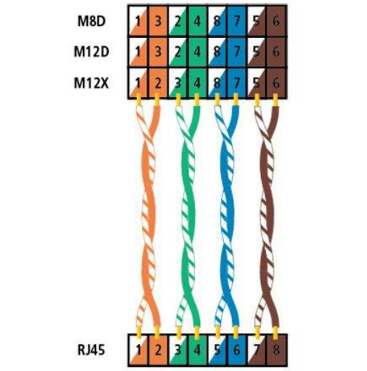 LinkIQ如何識別M12X、M12D、M8D 端接線纜的接線圖。
