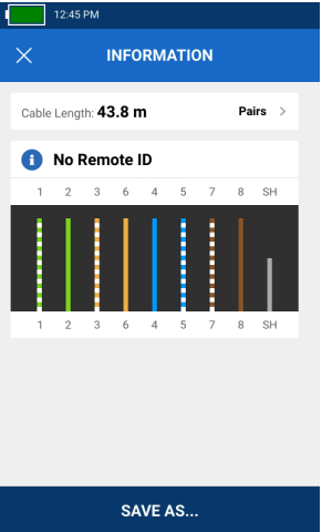 未連接遠端單元的線纜測試顯示長度和電纜編號