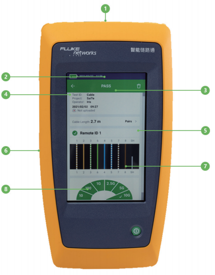 8.  設備上可保存多達1000 個測試結果,並且測試結果可導出至LinkWare  PC