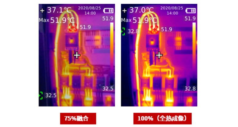 配備了熱成像、可見光、融合、畫中畫四種圖像模式,滿足測量中以及後續查看辨別圖像的需求。