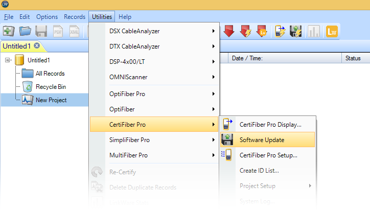 點擊 Utilities > DSX-CableAnalyzer > Software Update